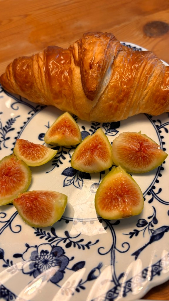 What am I eating in France? After living in France for almost a month, I wanted to write about what we have been eating here. Food is delicious here! Most days we start out with yogurt and prunes (the local specialty here in the South of France) with muesli, apples, pecans or walnuts. There are some very healthy seeds already in the muesli, including flax, sesame, and pumpkin. We have bought croissants a couple of times as an added treat but we don’t eat them daily. Of course we also enjoy our cuppa coffee or deux!